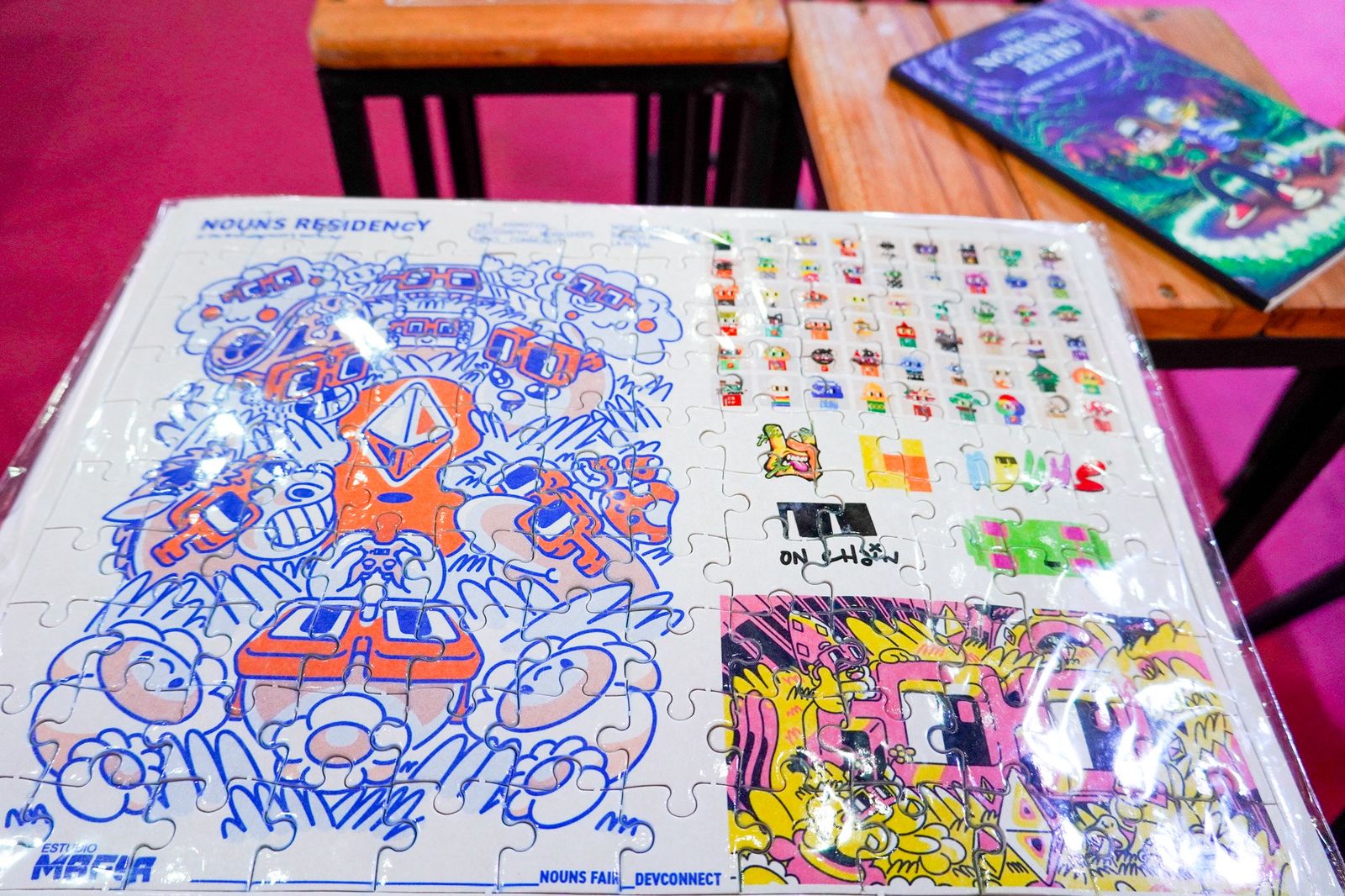 At the Nouns Fair stand, located in the Yellow Pavilion within the Collectibles District, the nounish presence became unmistakable. The space operated as a vibrant hub where culture, creativity, and community converged hosting micro-sessions, nounish shirt printing, and poster production carried out by DAO artists. A constant flow of images captured throughout the event documented the raw NOUNISH energy circulating across the venue, reinforcing how physical touchpoints amplify the ethos of open, permissionless creation. - The Nouns Art Residency Collection is live! 10 artists. 10 new nounish artworks. All created during @devcon in Argentina Mint your favorites ⌐◨-◨ devconnect.nouns.wtf Nogglesboard added momentum to this environment by integrating with the GNARS talk, Nounspace activities, and other artistic initiatives happening throughout the hub. Special recognition goes to Yuya, whose handcrafted stop-motion process became a highlight, as well as to Mono and the entire Nouns Amigos team for their dedication in shaping the experience. These contributions elevated the collaborative spirit that defines the broader Nouns ecosystem. As part of the activation, we brought two custom puzzles featuring artwork by bore.eth, pieces that helped decorate and energize the physical space, alongside limited Nogglesboard chamomile soaps, which became small but memorable artifacts of the gathering. The result was a meaningful convergence of artists and builders, demonstrating how an onchain proposal can materialize into a physical hub that strengthens relationships, expands narratives, and showcases the creative potential of nounish culture.