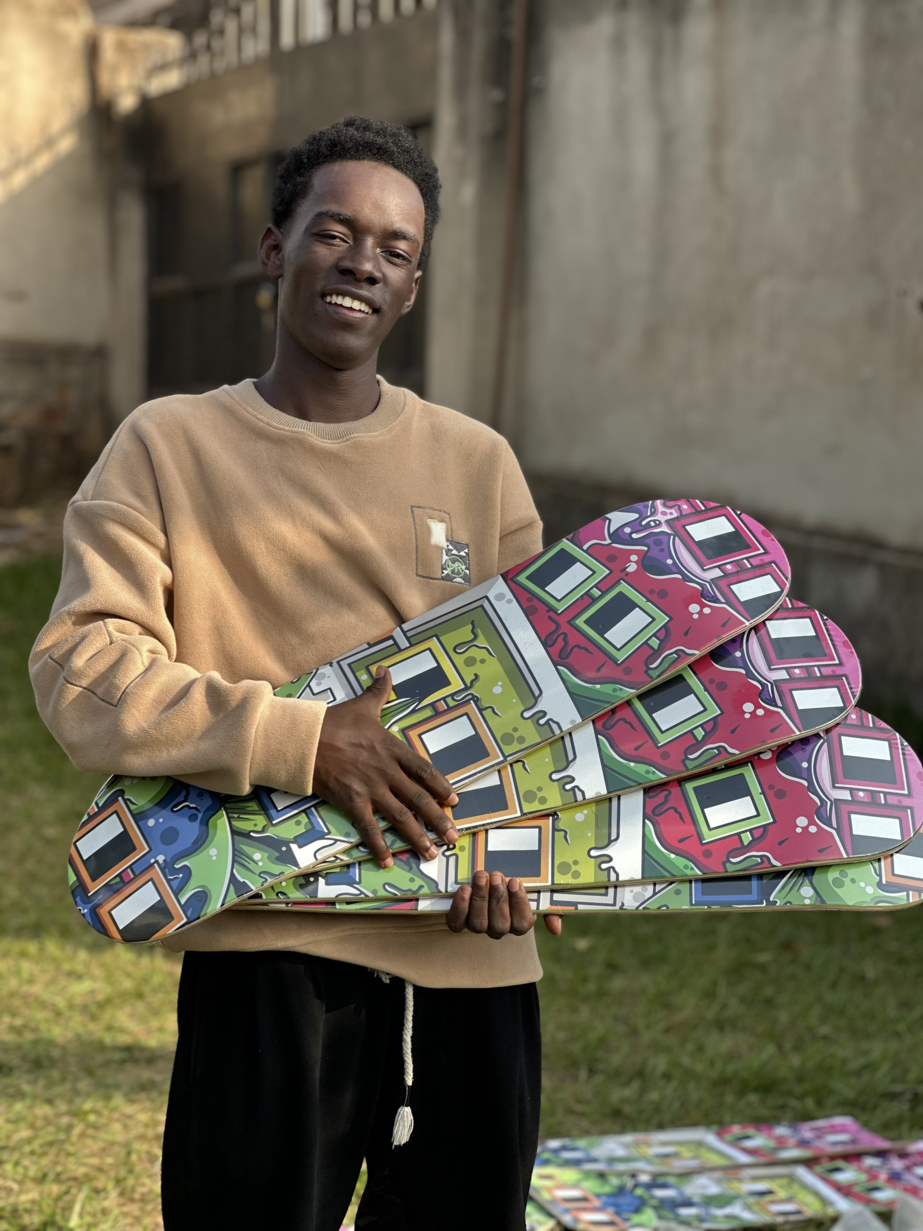 On an international scale, the project’s commitment to the skate scene in Uganda highlights the importance of public goods. Forty new decks were sent to local skaters, which, after use, will be recycled and turned into new Nogglesboards — creating a virtuous cycle of sustainability, creativity, and empowerment. In addition, the donation of essential tools like Makita electric saws directly supports the community's ability to build their own Nogglesboards and keep the DIY culture alive. These actions not only reinforce skateboarding as a tool for expression and inclusion but also energize local environments and boost creative autonomy. At the heart of the project lies a simple yet powerful belief: Nogglesboard believes in the intersection of art, attitude, community, and concrete action.Each recycled deck carries values that go beyond style — they are visual and physical manifestations of freedom, decentralization, and care for one another.